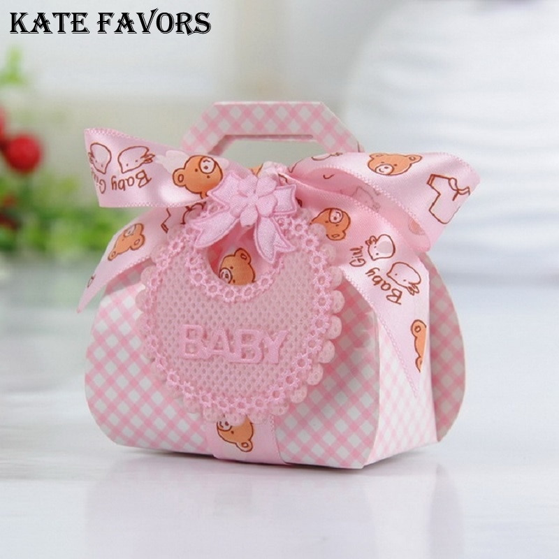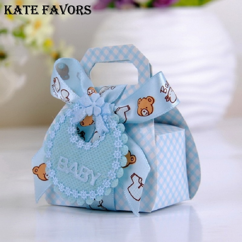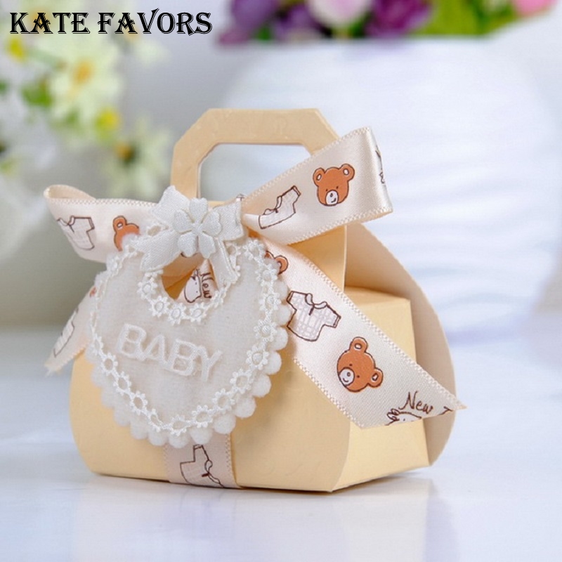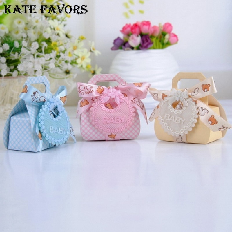 Bear Shape DIY Paper Wedding Gift Christening Baby Shower Party Favor Boxes Candy Box with Bib Tags & Ribbons12pcs
