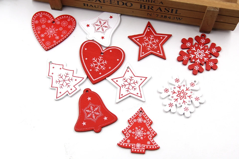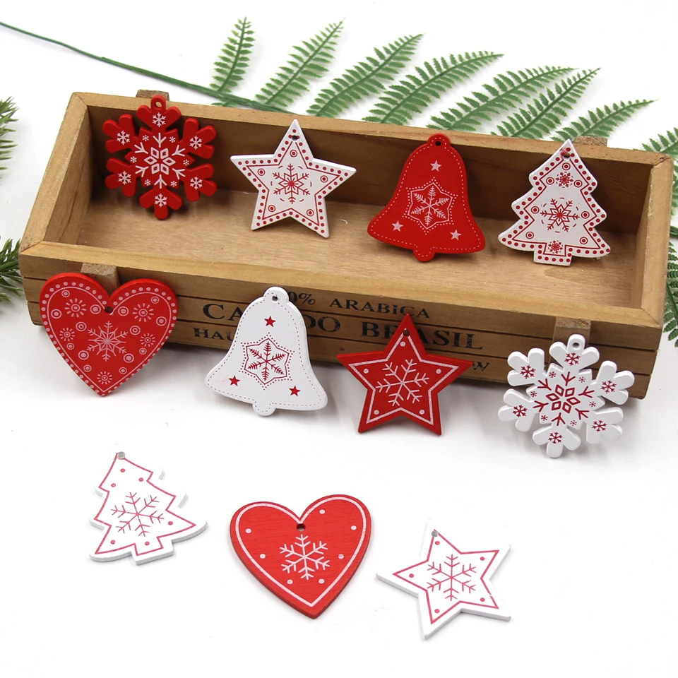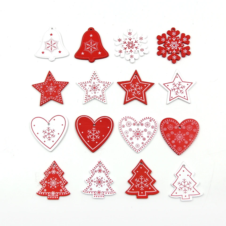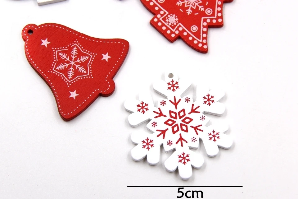 12PCS/Lot DIY White&Red Christmas Printed Wooden Pendants Ornaments For Kids Christmas Gifts Xmas Tree Ornaments Decorations