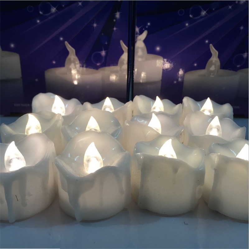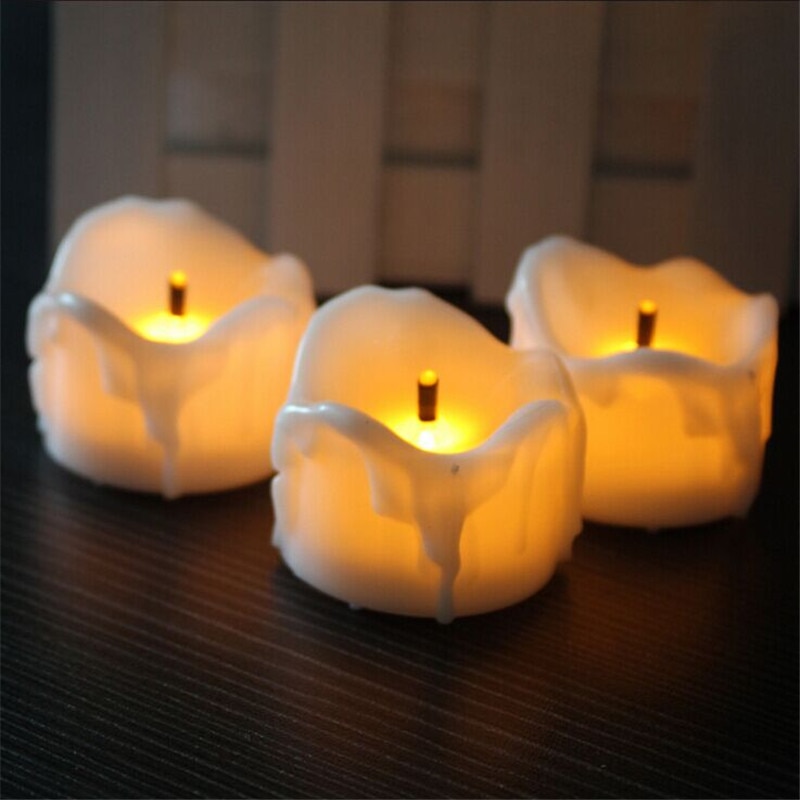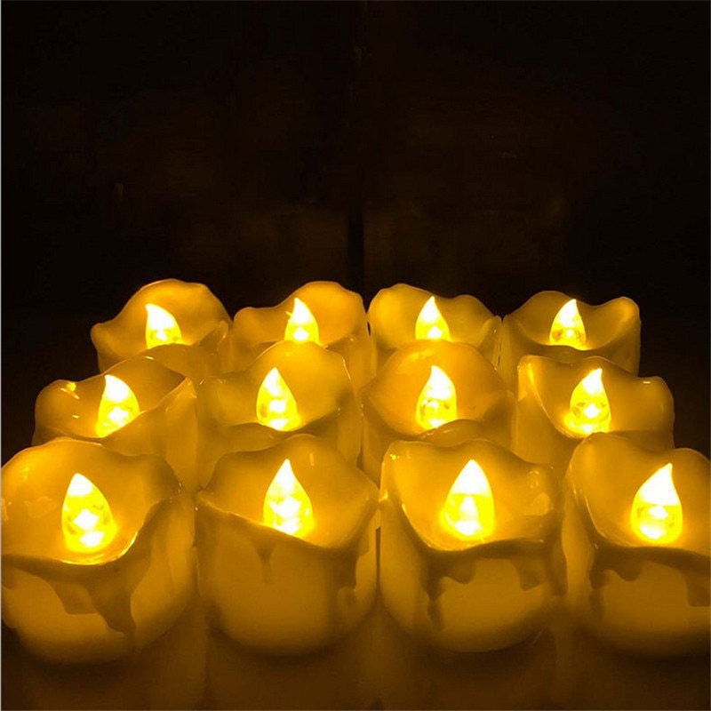 24pcs Flameless Yellow Flicker Tear Wax Drop Candle Mini Battery Operated Tea Lights New Arrive Realistic Led Tea Light Candle