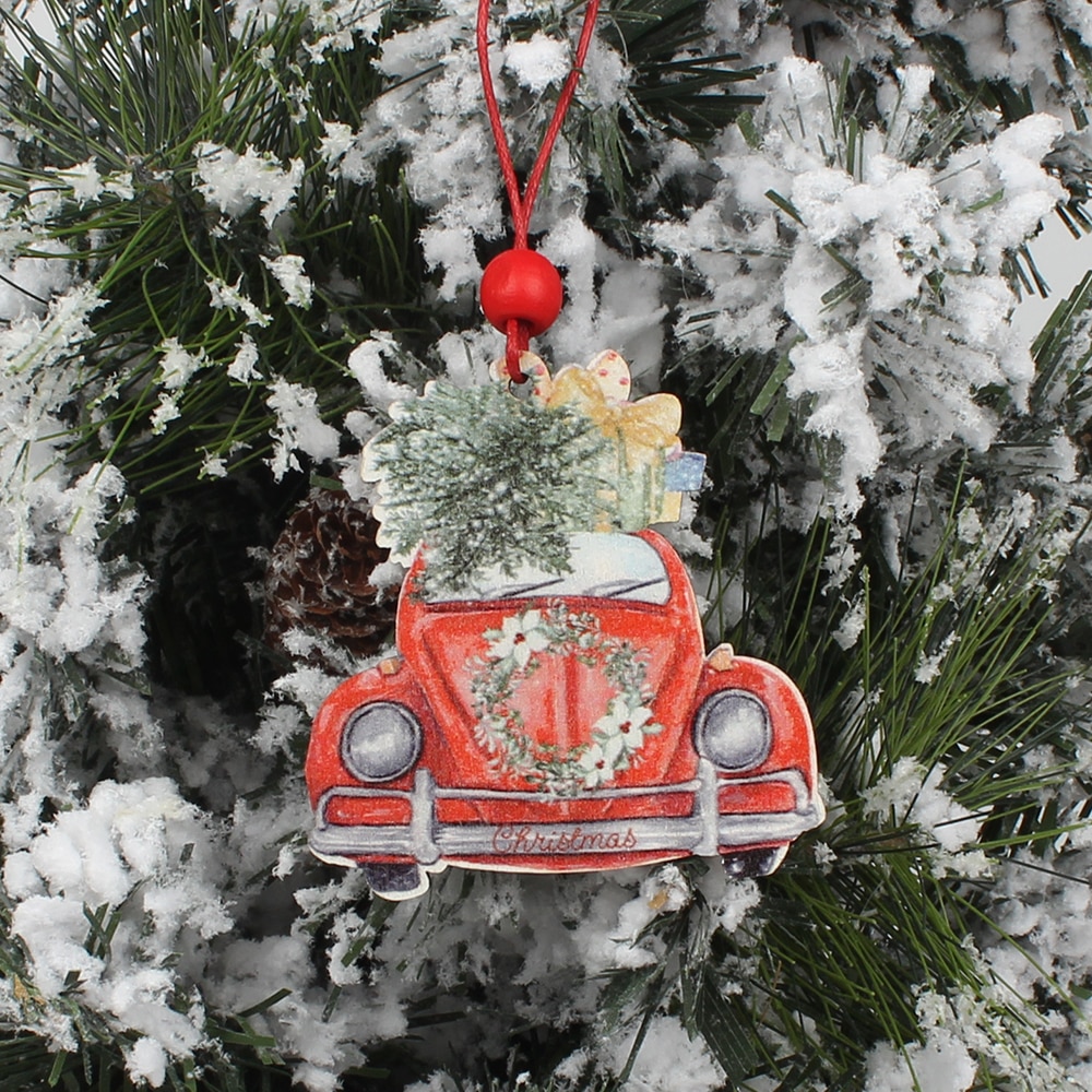 HUADODO 3Pcs Christmas Truck wooden Pendants Ornaments for Christmas tree Ornament New Year decoration Party Kid toys