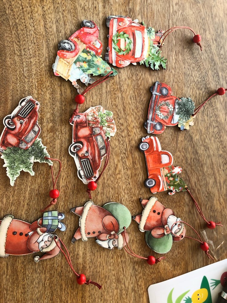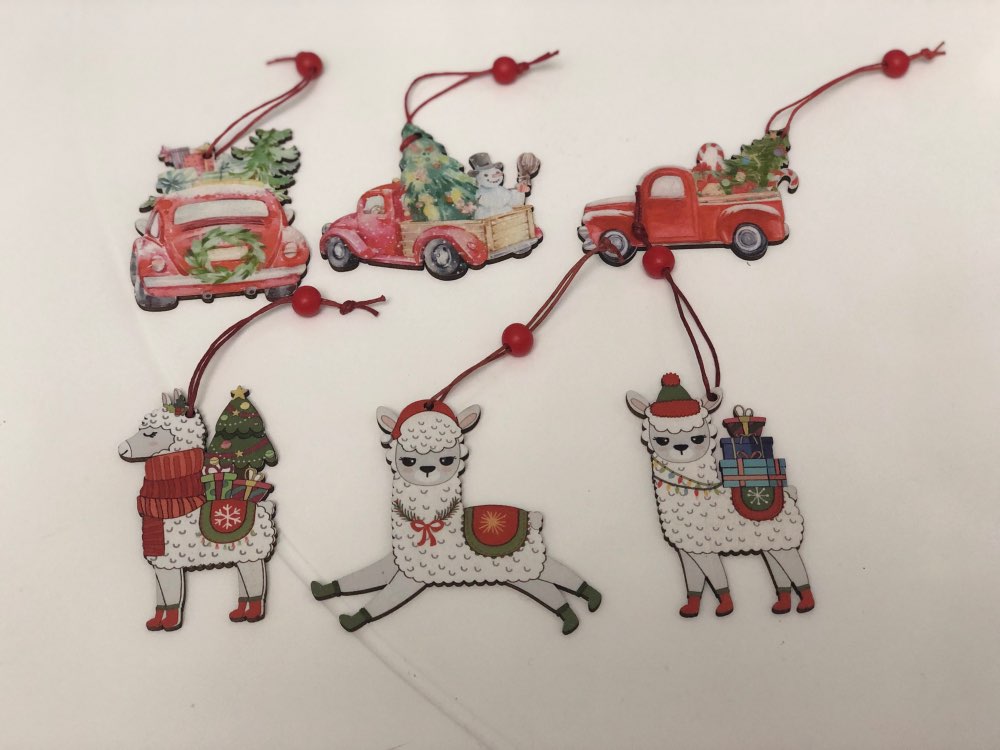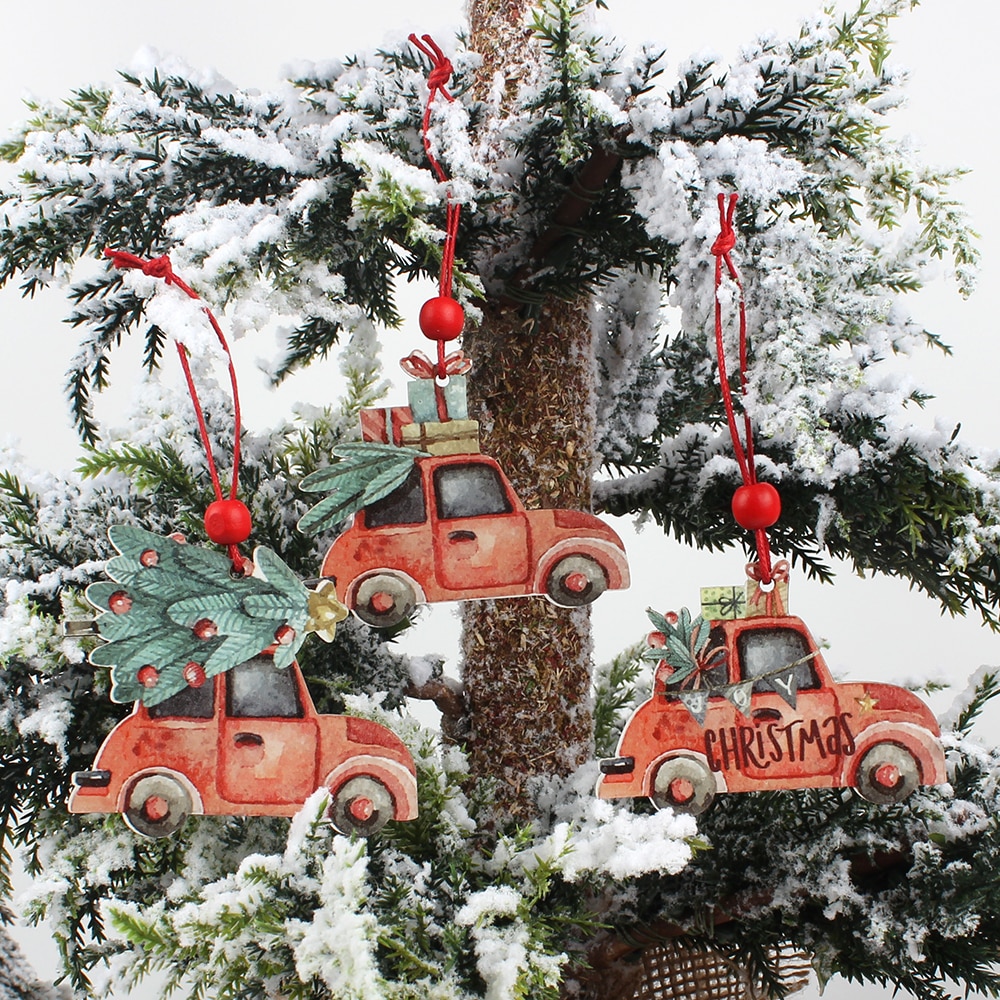 3Pcs Christmas Truck wooden Pendants Ornaments for Christmas tree