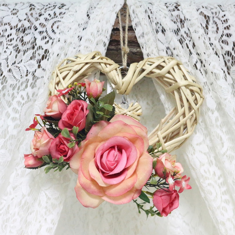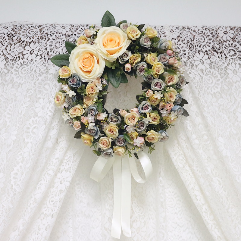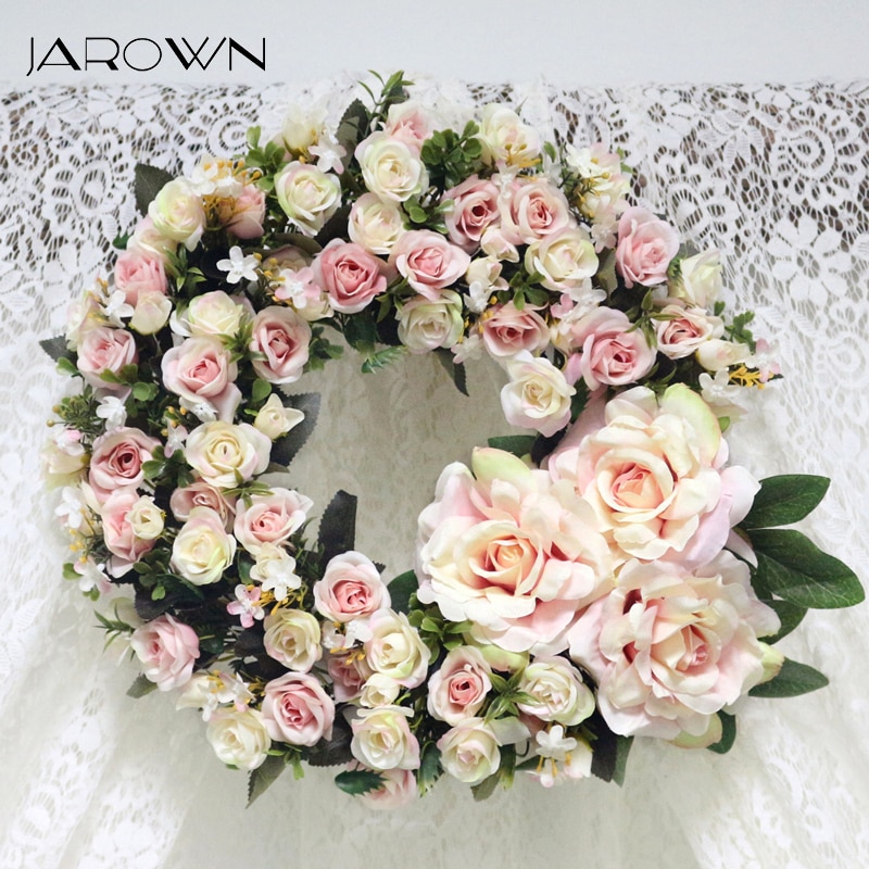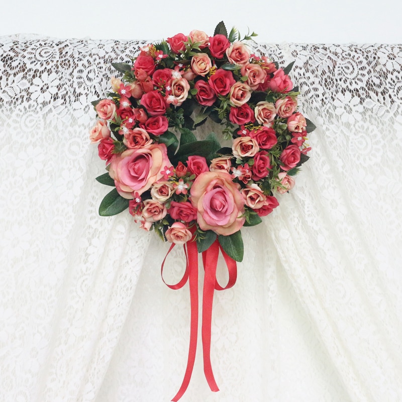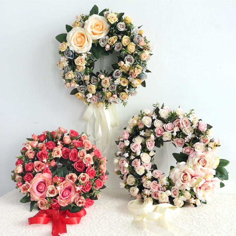 Artificial Door Knocker Simulation Silk Rose Flowers Wreath Foam Straw Garland
