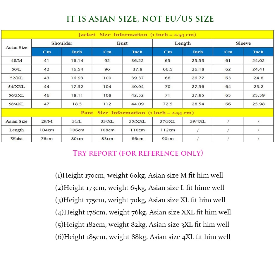 - Asian size :M,L,XL,XXL,XXXL,4XL(Not EU/US size)