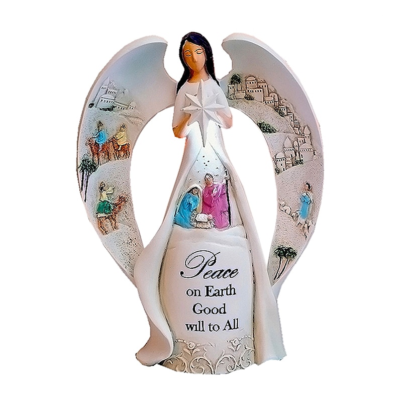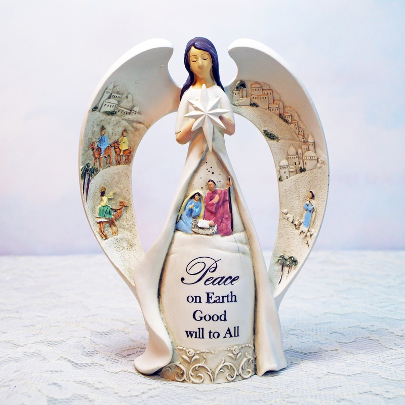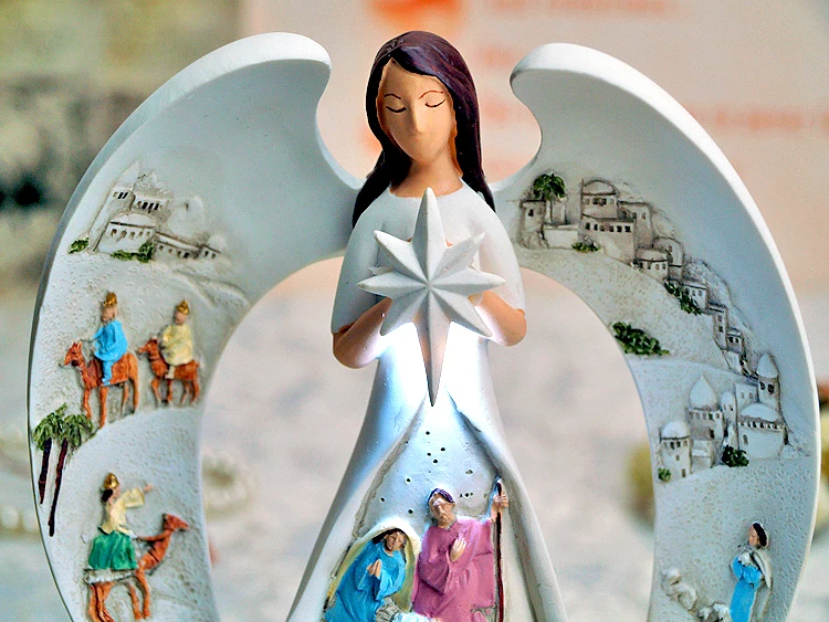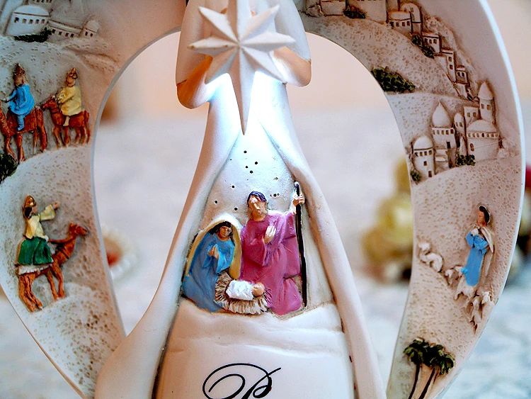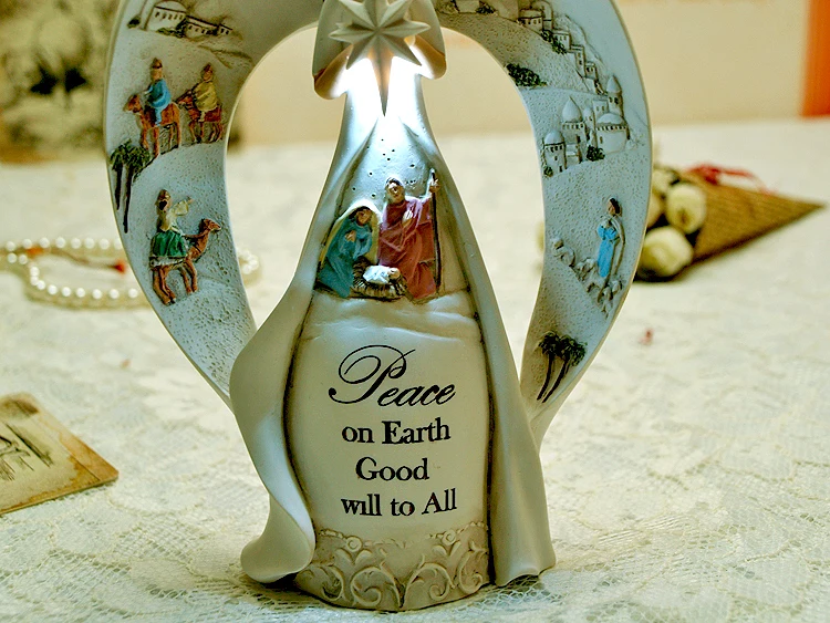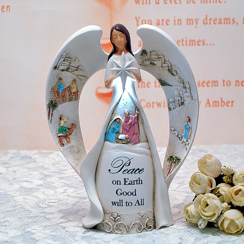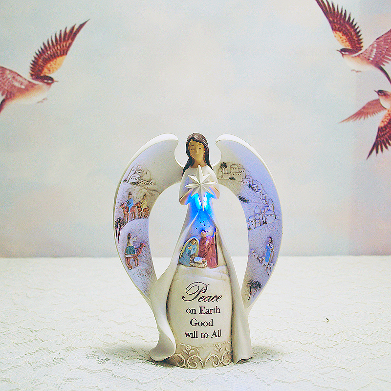 God Christian Angel Statue Holiday Gift Painted Jesus Resin Crafts Christian LED Lights Christmas Sculpture Home Decor