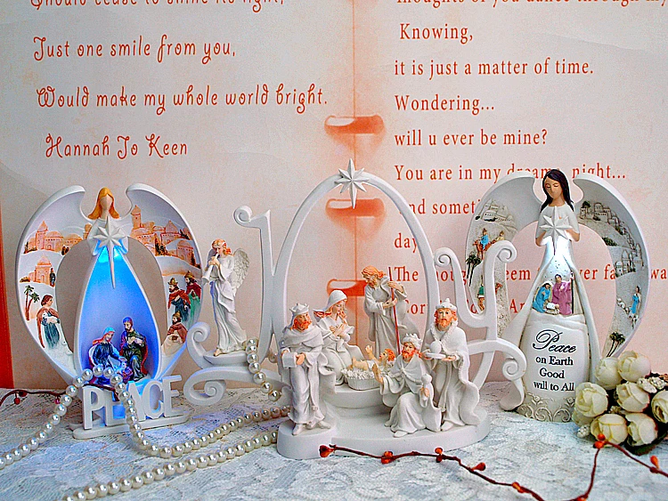 Christmas Gifts, Christmas Home Decoration, Gifts for Friends, Church decoration items, Home decoration itemsGod Christian LED Night Light Resin Crafts Angel Statue Family Church Decoration Jesus Christ Decoration Gospel Gift