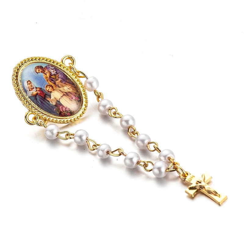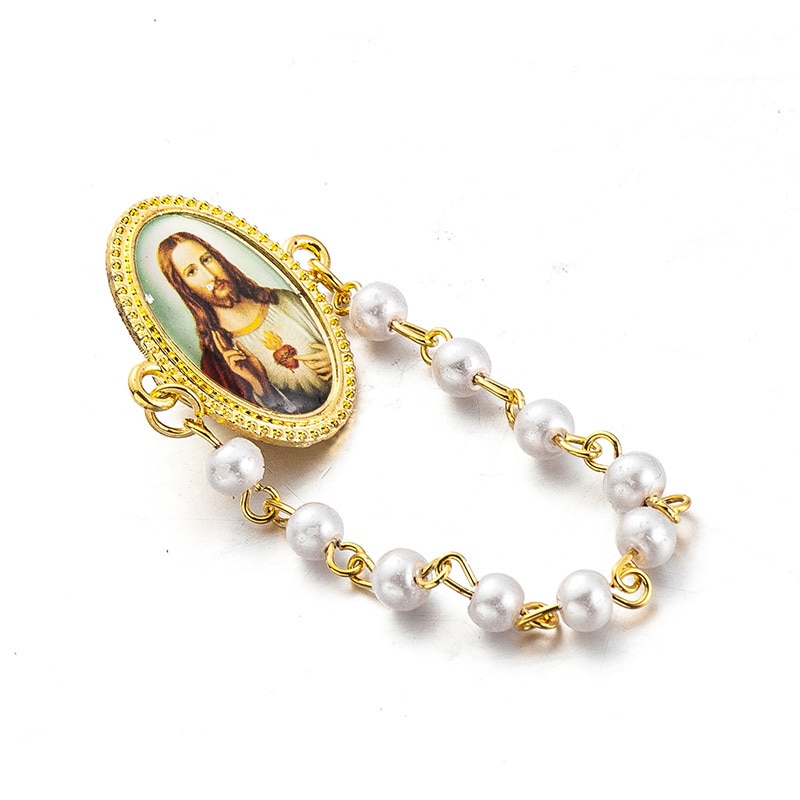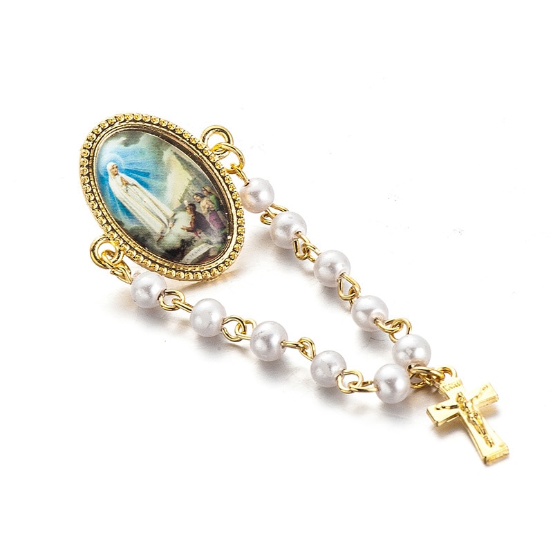 5 pcs/lot New pearl beads pendant brooches for women Jesus christian virgin mary cross long lapel pin broches jewelry stochastic