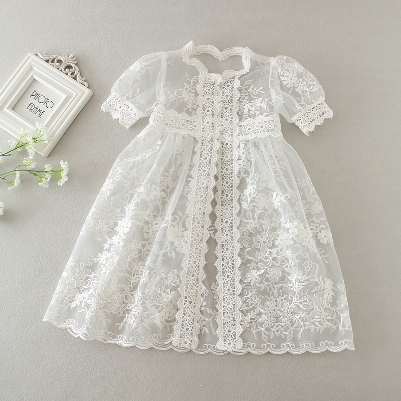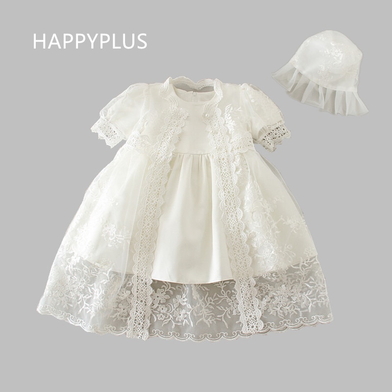HAPPYPLUS Snow White/Ivory Baby Girl Christening Dress Gown Set Embroidery Baptismal Outfits Formal Baby Dresses Birthday 1 Year