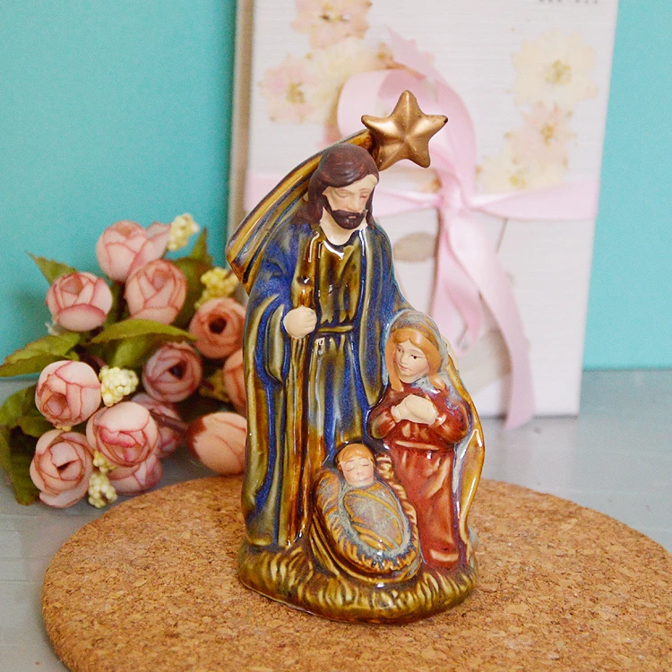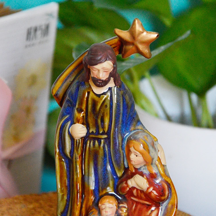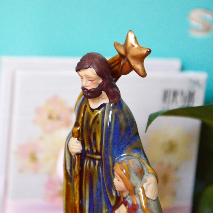 Christmas Gifts, Christmas Home DecorationChristian Jesus Christmas Present Gifts Ceramic Ornament Figurines Holy Family Led Lamp
