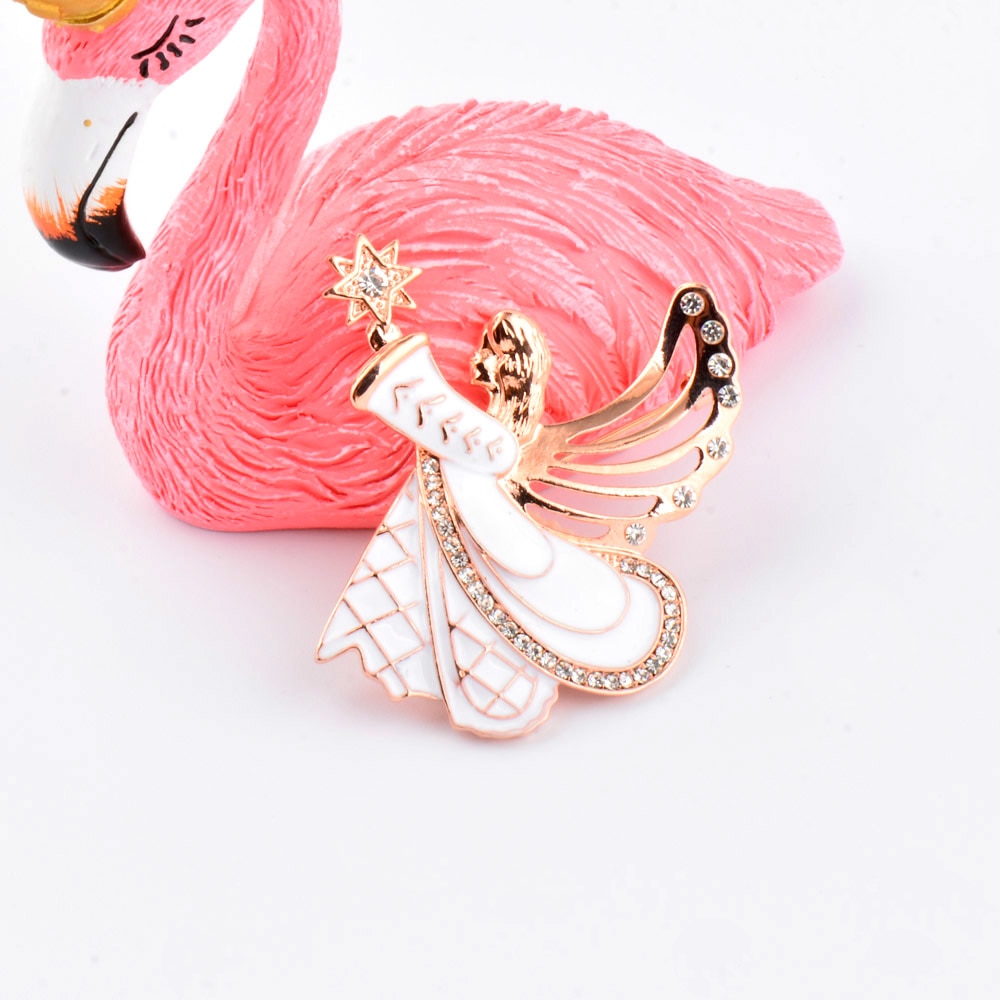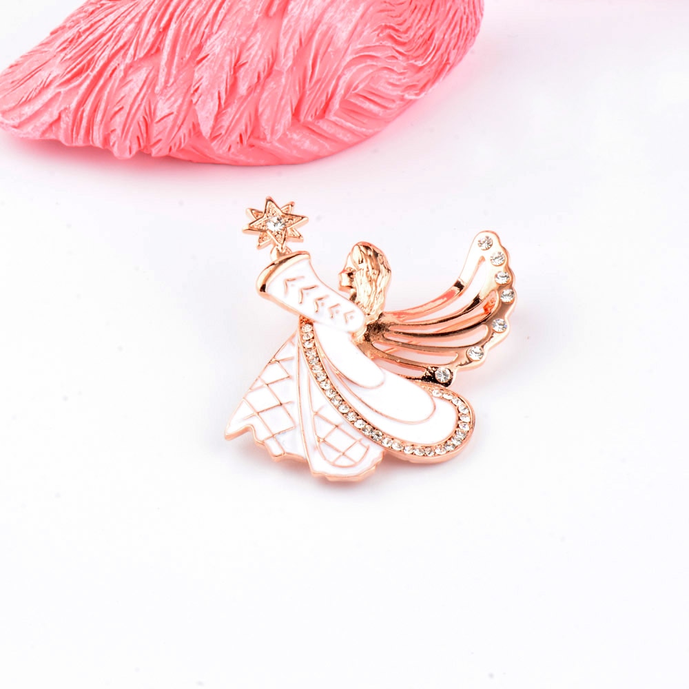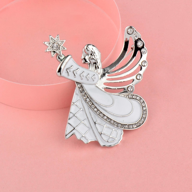 Unique White Enamel Angel Wing Girl Brooch Pins Fashion Women Coat Accessories Gifts