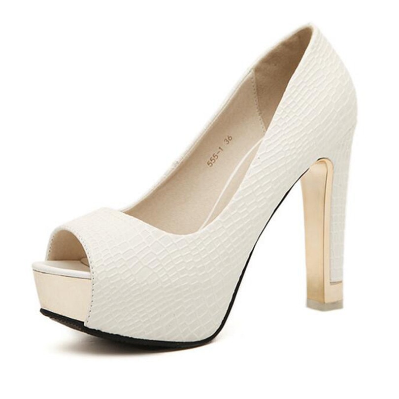 Fashion Slip On Women Pumps Platform High Heels Shoes Lady Peep Toe Square Heel Dress Shoes Sexy Wedding Bridal Shoes